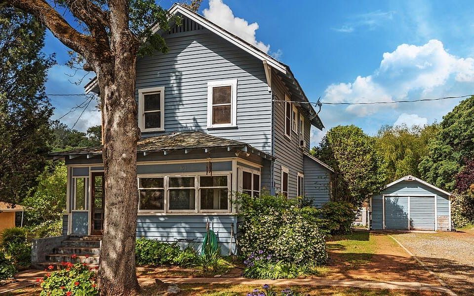Cute 1920's vintage fixer with lots of potential! On over 1 acre with possibility for future development (buyer to verify with city). 3/1 home built in 1926 needs lots of updating. On post and pier foundation. Central HVAC installed in 2008 on updated electrical panel. Solid wood floors underneath linoleum. Sewer and city water in street. Currently on older well and septic. Natural gas. Scenic creek across property. Separate 1 stall garage, laundry and pump house. Do not access property without an agent present.