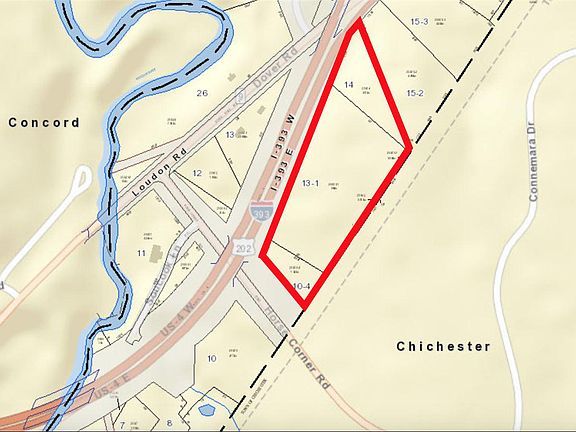 At edge of Concord Gateway, vacant commercial land suitable for a large number of permitted uses (see attached Table of Uses), which include but are not limited to, retail, office/professional, commercial/agricultural, restaurant and daycare. A major benefit to the land is excellent and direct visibility from 393/Dover Road [frontage of 1,375']: NH DOT 2013 data shows 15,000 cars pass directly by the property daily. The property is just over the line from Concord via Loudon Road, and a short distance from Concord's Gateway Performance District. Vehicular access would be permitted via frontage on Horse Corner Road. Three lots sold as one for a total of 14.45 acres. Note that Owner is planning on clearing a driveway and some of the property this fall.