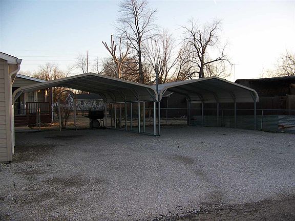 That's right! This is a 2005 manufactured home with 3 bedrooms, 2 full baths with a 2.5 car detached garage on a corner lot. Spotless like new condition! Plus, 2 metal carports side by side for extra storage for the big toys. Enjoy balmy evenings relaxing on the side deck with a roof, electricity and a ceiling fan. The Living Room is open into the Kitchen and Dining area. Complete with a stainless steel double sink, kitchen island with additional cabinet space and bar stools! Includes refrigerator, stove, dishwasher, plus washer & dryer! Three Bedrooms each with a walk in closet! Master Bedroom and Master Bathroom located on opposite end from other bedrooms. Enjoy a double sink, plenty of mirrors and a garden tub. PLUS a completely chain link fenced in yard great for pets or kids Take your tour asap and secure this clean, comfortable home for you and your family.