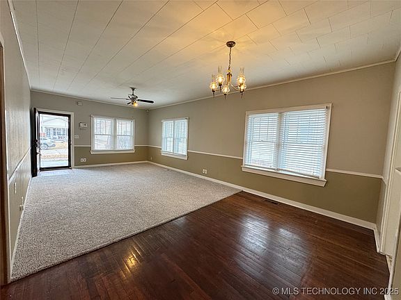 Charming Bungalow in Great Location! Welcome to your dream home! This delightful 3 Bed/1.5 bath bungalow blends classic charm with modern updates! This home features a spacious living and dining area perfect for relaxing and entertaining! The updated kitchen includes stainless steel range & refrigerator, dishwasher, ample cabinet space, and a cozy eat-in bar! A large laundry room could also double as a home office space or media center adding a convenient flex space for daily life! Step out onto the side deck, leading to a detached garage, and large fenced backyard with a patio and fire pit—ideal for outdoor living & gatherings! Flooring includes original hardwood floors, new carpet, and ceramic tile in the kitchen and bathroom; new LED light fixtures and ceiling fans; central heat and air; Heritage shingle roof & vinyl siding! The huge covered front porch & porch swing along with beautiful color combination and landscaping is the perfect spot to enjoy your morning coffee! This move-in-ready gem won't last long! Schedule your viewing today!