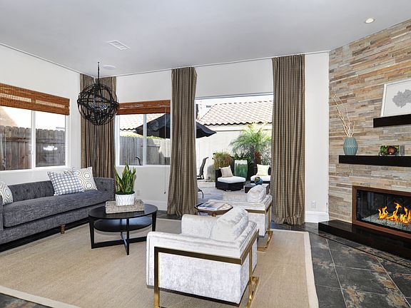 This newer built dream home is a mile from the beach, Pacific City, and Huntington Beach Pier, and has spectacular views of the ocean and city lights. Situated at the end of a quiet cul-de-sac. This spacious home features 3 bedrooms, 3 baths, and a large private bonus room and patio deck on the third level, along with breathtaking views of the ocean and city lights. The kitchen equipped with chef's grade stainless-steel Wolf appliances, granite counter tops, a large island, walk-in pantry, stainless-steel Monogram refrigerator, and an open concept to the spacious family room. The grand master retreat features a custom tiled fireplace with wiring for a flat screen TV, ceiling fan, and a fantastic balcony with great views. The master bathroom features a giant walk-in shower, jacuzzi tub, dual sinks, and built-in closet organizer. The other two large bedrooms host gorgeous hardwood floors and share a Jack and Jill bathroom with dual sinks, and a fabulous walk-in shower. Upstairs laundry room, with newer washer and dryer, on the same floor as the bedrooms. The magnificent courtyard, outside the kitchen and family room area, has a fireplace and stainless-steel BBQ perfect for entertaining guest. Two car garage with alley access. This modern home has been updated with top of the line cabling for inside sound speakers, wifi, and internet. All within a short distance to the beach, shopping, restaurants, and more.