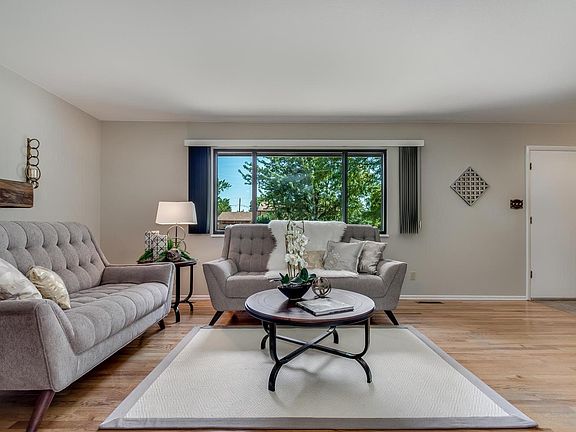 Beautiful 3 bed, 2 bath ranch home...updated and well maintained...with a great yard and it's move-in ready! A tile foyer meets you at the front door and carries you across to real hardwood floors throughout the bedrooms and living room. Huge master bedroom w/bath has private access to patio. A bright eat-in kitchen with gas range, new dishwasher and new refrigerator offers a gas fireplace and slider access to patio. Office/Bonus room off kitchen with garage access. New Interior Paint, Newer Roof and Furnace and updated bathrooms. All appliances stay including clothes washer and dryer. Concrete drive wraps around side of home allowing for up to 6 cars, plus a garage space for compact car. Two-story workshop tower in backyard - a contractor's dream or perhaps a little princess. Close proximity to public transportation and schools. This is it...come on home!
