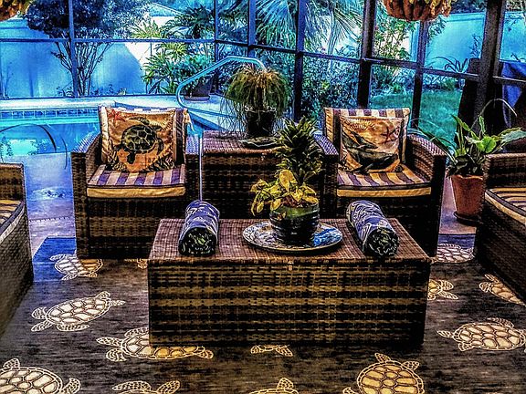 This beautiful and contemporary 3/2 pool home is a breathe of fresh air that will captivate your heart and you will never want to leave home again. Close to everything and still private, this home on a cul-de-sac invites with features such as these: 12 x 24 salt pool w/930 sq. ft. screened enclosure, lovely landscaping, native Florida orange tree, beautifully kept home with granite countertops, updated bathrooms, decorator lighting, attractive interior paint, city water and sewer, storage in garage, some new and upgraded plumbing fixtures, fans, light fixtures, exterior lights, vertical blinds, welcoming exterior paint, storage shed, too much to list!