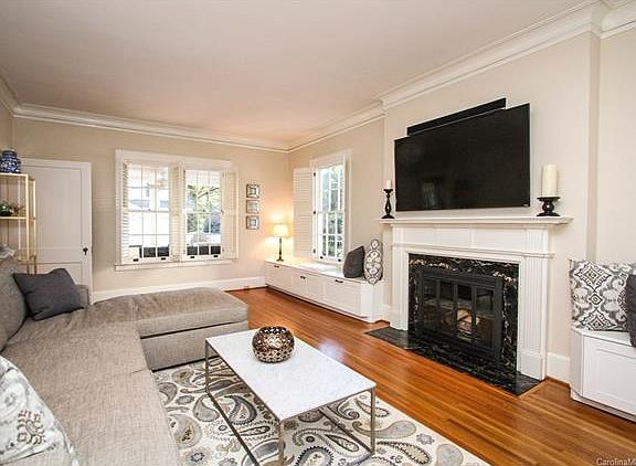 Beautiful classic 1927 Myers Park home on tree lined street. High ceilings, heavy moldings, gleaming wood floors, abundant windows, large rooms. Great architectural details & 2 fireplaces. 2009 kitchen remodel w/custom cabinetry, granite, stainless appliances, large island w/butcher block top. Two car garage w/suite above features bedroom, office, full bath & screen porch. 2012 landscaping, brick walk & steps. Just minutes to Uptown. Walk to park, farmers market, restaurants, grocery, shopping.