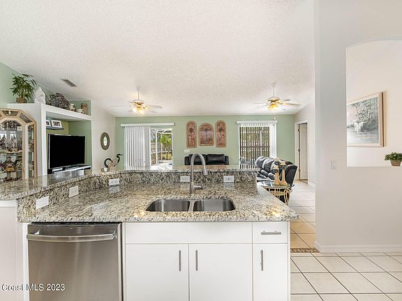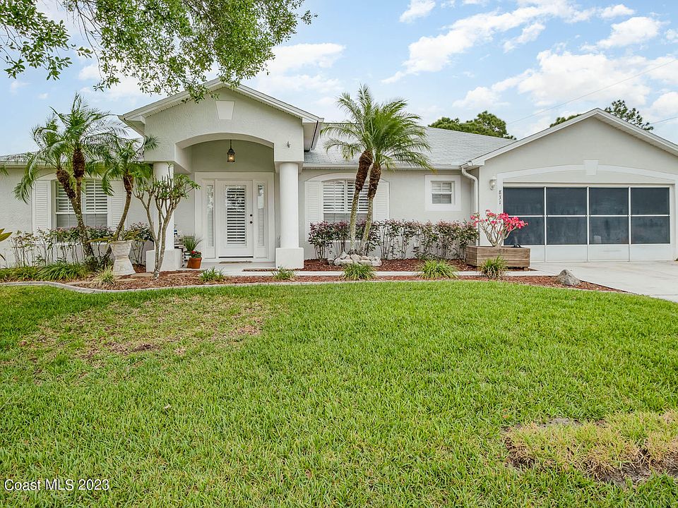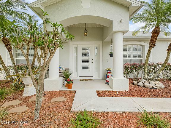 Beautiful 4 bedroom screened pool home on almost 1/3 acre. Tucked away in the cul-de-sac on newly paved road w/no thru traffic. The cleared lot behind the home is also available for $59,900. Resurfaced screened pool w/fountain & waterfall plus covered porch. Great for entertaining. Open island kitchen w/granite counters & stainless appliances overlooking great room. Excellent floor plan w/high vault ceilings & split bedrooms. Brand new roof plus newer AC & tankless water heater. Ceramic tile floors throughout. City water. Underground electric. Sprinkler system on well. Indoor laundry room. CBS construction. Master features dbl sinks, walk-in closet, jacuzzi tub & sep shower. Great neighborhood minutes from I-95, park, shopping & beach. Don't miss this opportunity. Lots to offer