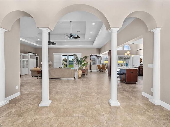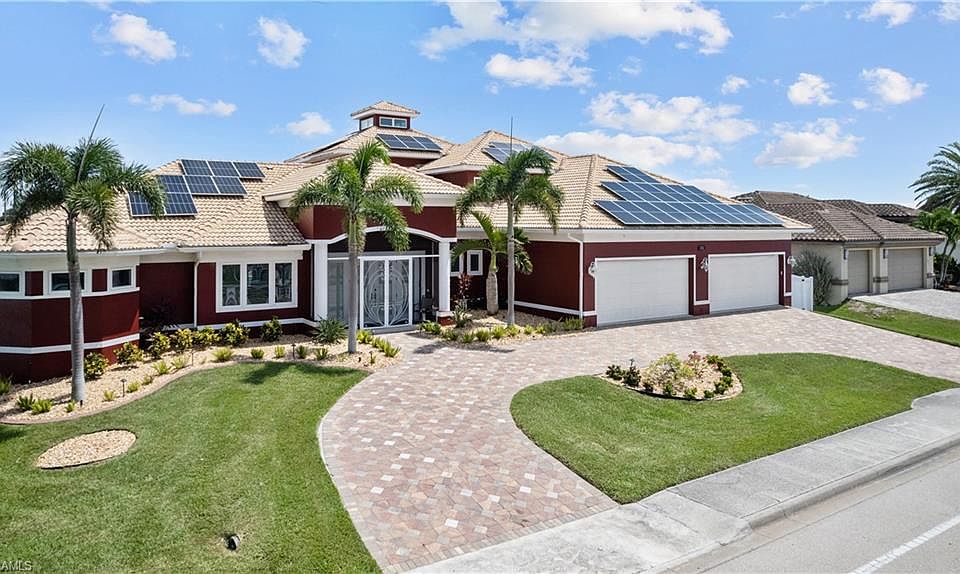 STUNNING! TRIPLE (3X) LOT DIRECT GULF ACCESS WATERFRONT HOME YACHT CLUB AREA. BUILT (2013) W/$750K IN CUMULATIVE BUILDER/OWNER UPGRADES IN THIS 4BDR, DEN, 3BTH, 5CAR A/C GARAGE, POOL/SPA. SOARING 14'/20' DOUBLE TRAY CEILINGS, ALL IMPACT STORM RESISTANT GLASS WINDOWS & SLIDERS. DIAGONAL TILES WHOLE HOME W/CARPETING IN BEDROOMS. CHEFS KITCHEN W/42' MAPLE UPPERS, COMMERCIAL STAINLESS STEEL APPLIANCES, LEVEL 5 GRANITE TOPS, WALK-IN PANTRY, 30' EAT-AT-BAR & CENTER ISLAND WORK STATION. MASTER BEDROOM W/12' DOUBLE TRAY CEILING, HUGE 12'X20' HIS/HER WALK-IN CLOSET, DUAL SINKS, 6'X12' TILED WALK-IN SHOWER. OPEN PAVER POOL DECK OVERSIZED (18'X40') CUSTOM POOL, SUMMER KITCHEN & PALM TIKI HUT, W/TV. CUSTOM DOUBLE DOCKS W/LIFTS (12K +16K) & SUNSET TIKI HUT. LANAI HAS ELECTRIC ROLL-DOWN KEVLAR SCREENS FOR COMPLETE STORM COMFORT. 5 CAR A/C GARAGE IS CAR COLLECTORS DREAM. ALL BEDROOMS ARE DOWNSTAIRS EXCEPT 4TH GUEST ROOM + LOFT/DEN ARE ALL UPSTAIRS. HOME HAS WHOLE HOUSE NEW SOLAR SYSTEM FOR $0 ELECTRIC BILLS AND WHOLE HOUSE GENERATOR SETUP, SMART HOME WIRED, THIRD LEVEL OBSERVATION + SUNDECK AND SEAWALL HAS BEEN RECENTLY COMPLETELY REINFORCED W/WARRANTY. HOME COMES W/1 YR HOME WARRANTY.