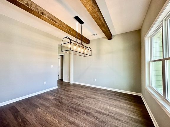 The WAKEFIELD PLAN features soaring 2-story foyer opening to a beautiful Dining Room that features Stained Beams & Farmhouse Lighting Fixture. Kitchen features shaker styled cabinets, quartz counters, designer selected tile backsplash, and walk in pantry! Stainless Electric Range/Oven, Dishwasher, and Microhood. Main level Owner's Suite features luxurious tiled bathroom with double vanity boasting quartz counters, garden tub, and separate tiled shower. Upstairs, there is space galore! Flex Space ideal for playroom or separate living area and an office! Three guest rooms w/vaulted ceilings and a shared bathroom with double vanity. Luxury Vinyl Plank flooring in much of the main level common area and tiled flooring in bathrooms. Fiber Cement Siding, Architectural Shingled Roof, and Rear Covered Patio. Mins from downtown Opelika and Tiger Town! UP TO $6, 500 IN CLOSING COSTS ASSISTANCE AVAILABLE!