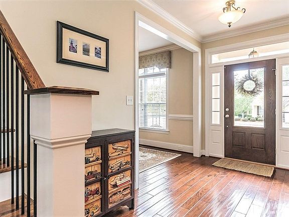 Beautiful custom home & former model by Homes By Dickerson on a landscaped lot backs to neighborhood park & green space. Full of upgrades including granite, custom built ins, 5" hardwoods, tile, 9' ceilings on both levels, SS appliances, & extensive trim, it features a 1st floor bedroom & full bath, separate Bonus (or 5th BR), screened porch & custom patio. HardiePlank, flat fenced backyard, walk up attic w/perm. stairs, & lots of storage, too! Great neighborhood w/sidewalks, swimming pool, & playground.