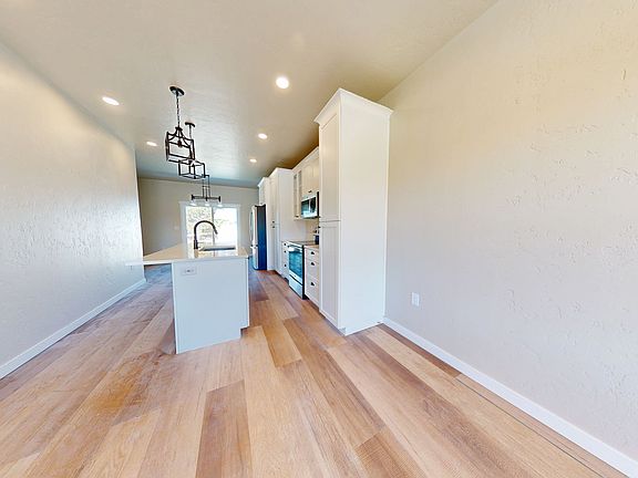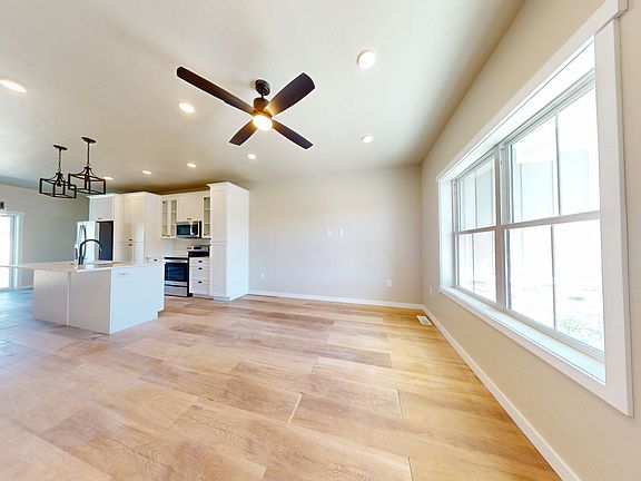 Introducing a stunning new construction farmhouse-style home, complete with a basement and designed with modern elegance. This charming home with striking black fixtures offers three spacious bedrooms and two luxurious bathrooms, each featuring double bathroom sinks for added convenience. The home includes a two-car garage and boasts top-of-the-line G.E. stainless steel appliances in the kitchen, complemented by Corian countertops and farm-style sinks. The kitchen is thoughtfully designed with a pantry, closet organizers, and a special cabinet for the wastebasket, ensuring a clutter-free environment. Enjoy the seamless flow from the dining room and master bedroom to the back patio, perfect for outdoor relaxation. Additionally, the home is prepped for a water softener and equipped with garage electric outlets for electric vehicles, making it both practical and future-ready. This exquisite farmhouse offers the perfect blend of style, comfort, and functionality.