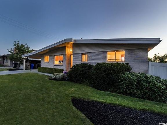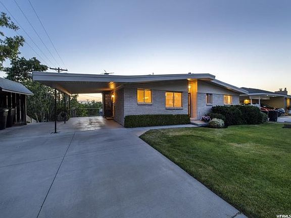 OPEN HOUSE SAT JUNE 12th 11:00-1:00 Beautiful, brick Mid-century rambler situated high on the Bountiful bench. Amazing views of the mountains, valley and lake. Cool retro lighting, vaulted ceilings throughout the main level, original hardwood floors, period correct design features, and flooded with natural light. Front entryway with tile leads to family room with brick-wall fireplace and hearth, sliding glass doors leading to covered veranda where you can soak in the incredible sunsets. Eat-in kitchen with good cabinet space and built-in pantry. Dining area with views of the Wasatch mountains. Master suite with 3/4 bath, two additional bedrooms, one being used as a den with custom wood walls and ceiling. Main level full bath with large tub, tile and skylight. Lower-level features huge family room with fireplace and walk out to patio and large backyard with mature trees including a plum and two hazelnut, shaded sitting bench and storage shed. One bedroom, 3/4 bath, laundry/storage room (washer, dryer and freezer included), workroom with bench and could easily be converted to another bedroom. Membrane roof, carport with shed and plenty of additional parking. Lovely, established neighborhood within walking distance to Utah's best Chinese food, The Mandarin restaurant, good access to mountain trails for hiking and biking, freeways and world class skiing. Agent is related to Seller. This is a great, well cared for property with a cool vibe.