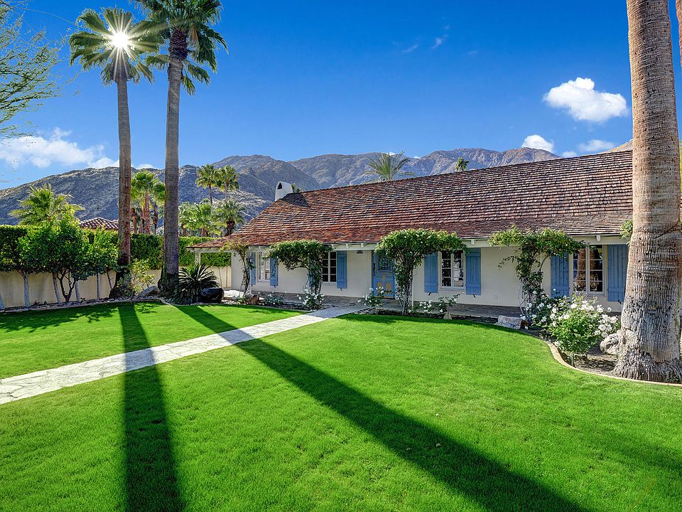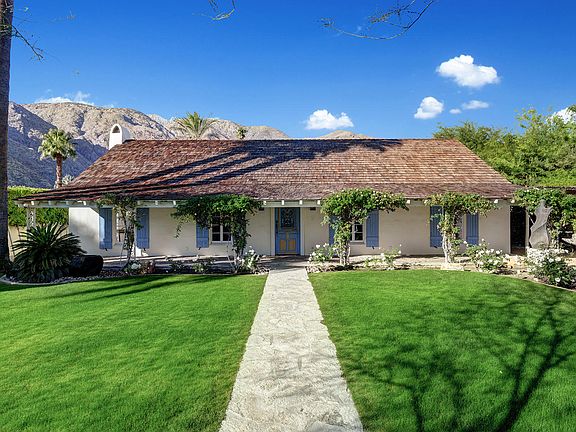Rare, unique and completely enchanting, this historic Palm Springs estate in the prestigious Old Las Palmas enclave is unlike any other in the region. Crafted in 1936, an airy and bright cottage takes center stage on a half-acre homesite that offers enviable privacy. Tall, manicured hedges and a gated driveway hint at the tranquility that awaits beyond. Spanning approx. 3,000 s.f., Cottage House is introduced by a classic covered porch that extends the width of the residence. Indoors, period-specific style is enhanced with wood and stone floors, new open-beam wood ceilings, four romantic fireplaces, and multi-paned windows with interior shutters. A gracious entry leads to a large living room with a separate sitting area and sliding glass doors that open wide to the backyard and spectacular mountain views. The one-level residence reveals a 410-square-foot detached guest house, a kitchen with stone counters and stainless steel appliances, a luxurious master suite with chic bath, and updated roof, lighting and AC systems. Cottage House is one of only a few Old Las Palmas estates to offer direct western mountain views from its backyard, which features a newly refinished pool and spa.