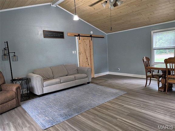 Nestled on a tranquil, private road, this newly remodeled Fenton Ranch combines comfort, convenience, and peace of mind. The entry foyer welcomes you with lots of closet space and bookcases. To the left is a bright, open great room with vaulted ceiling, and LVP flooring throughout, creating an inviting atmosphere for everyday living. The eat in kitchen has bright white cabinets and opens to a small deck, perfect for BBQing. Both main floor bedrooms are good sized. The walkout lower level has a professionally waterproofed foundation, french drains and two sump pumps, backed by a transferable lifetime warranty. It provides versatile living space, including space large enough to put in a family room. There are 2 bonus sleeping rooms with egress windows. One has a wood-burning stove-ready for connecting there is also a laundry area, and ample storage. Walk out to shady, gently sloping over 1/2 acre yard with lots of tree. Improvements include: Improvements include: fresh paint inside and out, tuck-pointing, newer flooring, mold and asbestos remediation. HVAC systems are 5 years new. Wood burning stove in basement is not connected. AS-IS. Low property taxes and Fox Schools, gives you peace of mind and everyday convenience. Schedule your visit today and make this your new home!