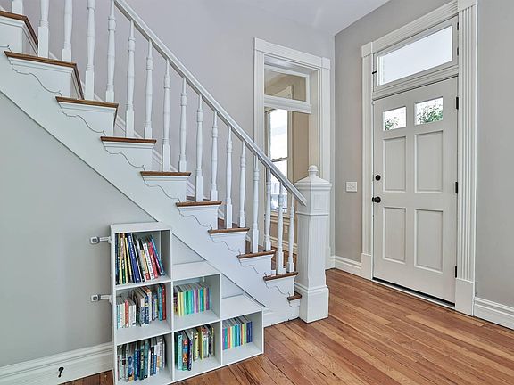 Renovated 4 bed, 3 1/2 bath brick home in Newport's historic East Row. Light filled with gorgeous original hardwoods, detailed fireplace mantles, and soaring ceilings. Enjoy the expansive eat-in kitchen which boasts ample cabinetry, granite counters and stainless appliances, a walk-in pantry plus a separate coffee/prep counter+sink w/beverage fridge adjoining the cozy dining room. Welcoming living room for gatherings and a large main floor laundry-mudroom and powder room. 2nd floor features a spacious primary suite with walk-in closet, black out shades, and ensuite double vanity bath with custom tiled shower, also a separate guest bedroom and full bath w/tub+shower in hallway. 3rd floor includes two bedrooms, ample closets and a full bath. Quaint fenced yard and newer 2 car garage. 2 HVACs, electrical, plumbing, roof approx 5 years.