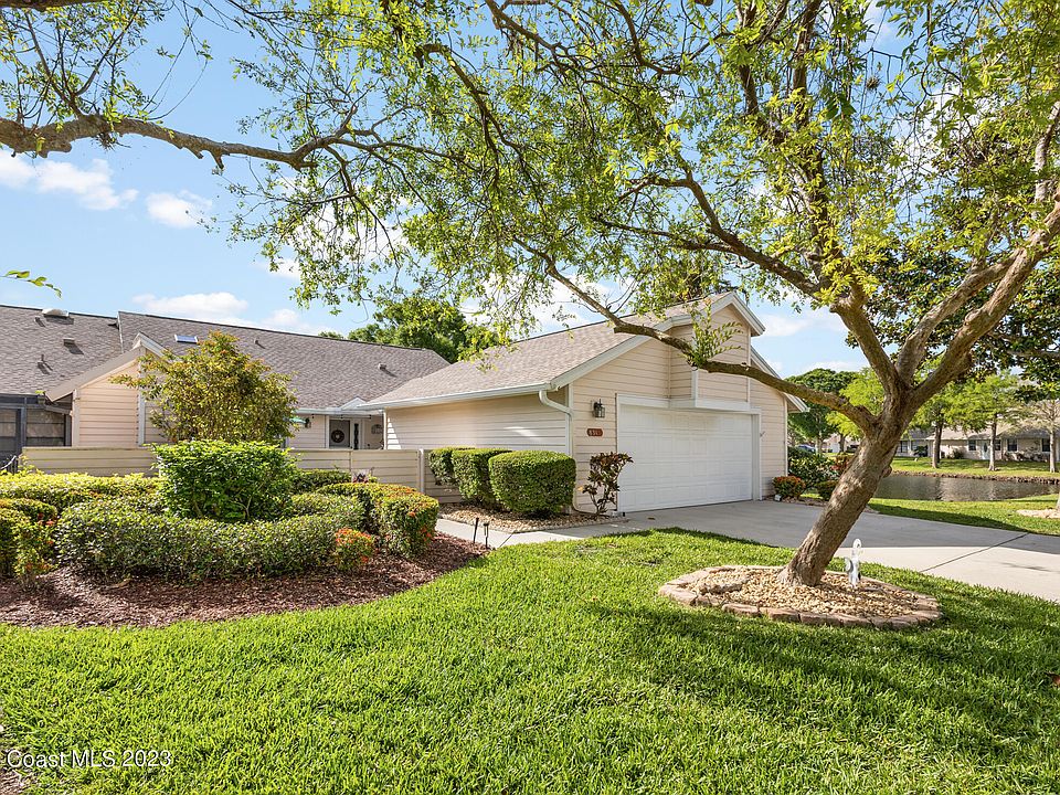 This one-story (end unit) townhouse has three bedrooms, two bathrooms, and an oversized two car garage. But what really sets this property apart is its location, with a tranquil pond wrapping around two sides of the home, offering water views from over a dozen windows. When you step inside you'll love the recent updates including flooring, granite countertops, stainless steel appliances, new windows and more. Situated in Suntree you'll have easy access to all the amenities this community has to offer, including highly desired schools, great shopping and dining options and plenty of outdoor activities. Whether you're taking a morning drive in your golf cart or enjoying a cup of coffee in your Florida room or entertaining in your fenced-in courtyard, this is the perfect place to call home.