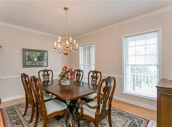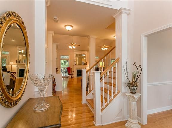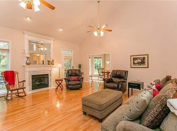 Hardwood floors over most the first floor, built in bookcase, large kitchen with extra cabinetry and work island, master bath with separate his and her vanities, enjoy the tree shaded yard from the covered deck, covered front porch also, gutter guards