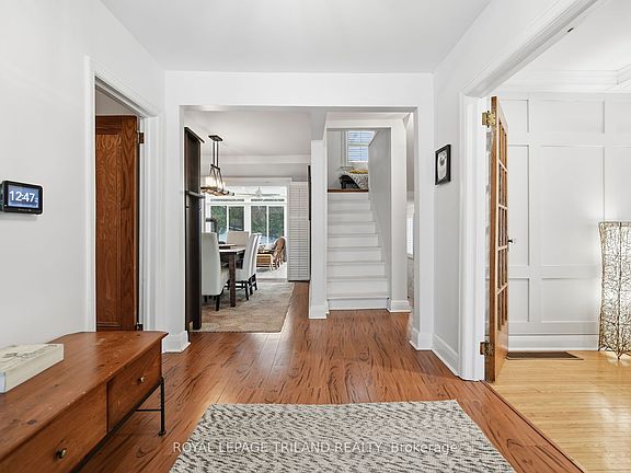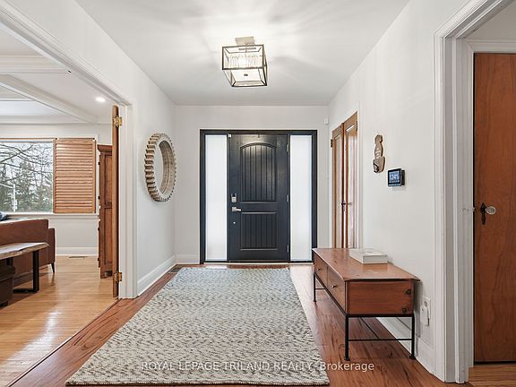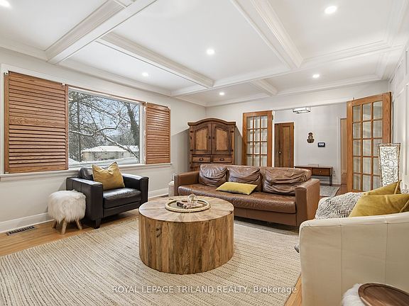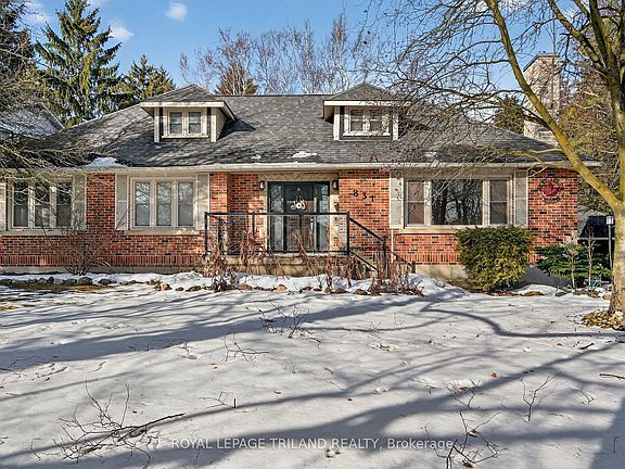 Stunning all-brick Oakridge Beauty with loads of character, offering over 4,000 sq. ft. of beautifully finished living space. The décor blends rustic charm with modern flair throughout. Situated on a generous 0.35-acre lot, the property is surrounded by a mature canopy of trees and features a heated in-ground saltwater pool-perfect for summer entertaining. Enter through the flagstone front porch with glass railings into a welcoming, oversized foyer. The main living room showcases a coffered ceiling, custom built-ins, and an inviting atmosphere ideal for relaxing or hosting guests. The tastefully designed kitchen features granite countertops, a farmhouse sink, banquet-style seating, and ample workspace. Sunroom, which overlooks the yard, was done in 2023 and offers amazing views of the four seasons changing. Three bedrooms are located on the main level, with a private and spacious primary retreat on the upper floor. The fully finished lower level offers a media/games room, custom built-ins, and a fifth bedroom with two egress windows-ideal for guests or teens. Both the main and lower-level bathrooms have been completely renovated with stunning tile work and glass-enclosed showers.Located in one of London's most desirable neighbourhoods, close to excellent schools, quick walk to Springbank park, trails and amenities, this home offers exceptional space, character, and lifestyle.