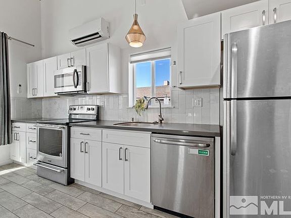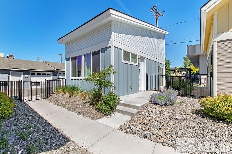 A rare opportunity to own one of Reno’s “Tiny Ten”! Prepare to be amazed by the comfort and functionality packed into this home’s modest size. Defying expectations with its clever use of space, this move-in ready, 2-bedroom, 1-bath, tiny home features 652 square feet of thoughtfully designed interior. Its energy-efficient design ensures both sustainability and style, providing you with a modern, low-maintenance living experience., Step inside and be greeted by contemporary design elements that include ceramic tile flooring, high ceilings, and double pane windows that fill the home with natural light. The second-story loft space offers versatility, serving as a second bedroom, office, or hobby space according to your needs. The living room area provides a cozy retreat, complete with a sliding glass door that opens to a charming back patio and outdoor space. The fully landscaped exterior, complete with a rear fence and communal courtyard, invites you to enjoy the peaceful atmosphere of your surroundings. As part of the HOA, you'll enjoy the convenience of common area maintenance, snow removal, and a detached single garage. The kitchen showcases a built-in dishwasher, built-in microwave, white cabinetry, and a beautiful tile backsplash, combining functionality and aesthetics seamlessly. Say goodbye to the stress of purchasing appliances, as the electric range, refrigerator, washer/dryer are all included in the sale. Thanks to its central location, this home is within a short distance of Downtown, Midtown, and the University of Nevada campus and boasts quick and convenient access to I-80. Opportunities to live within this community are rare, and this “Tiny Ten” home is guaranteed to sell quickly. So, don’t miss out – schedule your showing today!