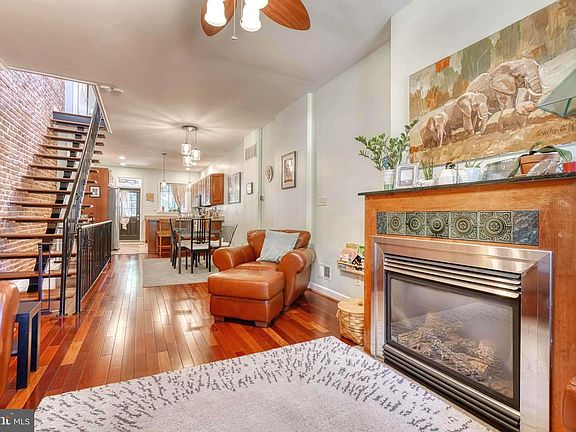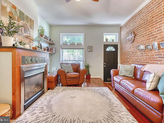 Excellent Condition Townhome in sought after Brewers Hill. This 3 story townhome comes with the trifecta: Roof deck (completely rebuilt in 2018), parking pad, and fully finished basement with bonus room. The Main Level features an open airy floor plan with cherry wood flooring, exposed brick walls, pendant lighting (dining and kitchen), and a gorgeous glass-covered gas fireplace. The Kitchen features solid surface countertop with ss sink, beautiful cherry cabinetry with huge double pantry, ceramic tile flooring, and stainless steel appliances with an updated refrigerator (2020) and dishwasher (2021). Rear access from the kitchen to the private parking pad. The Upper Level features 2 Bedrooms and Full Spa Bathroom to include oversize jetted soaking tub. Both bedrooms have hardwood flooring and a ceiling fan. The Primary Bedroom has new windows (2022), a custom tray ceiling, and a large closet. The 2nd Bedroom has its own private walkout deck with a spiral staircase leading to a second roof deck for your evening sunsets. The Lower Level features a finished basement with a family room/office/bonus room, full bath and laundry room with plenty of storage. The water heater was updated in 2019. Indoor and outdoor AC units were updated in 2020.