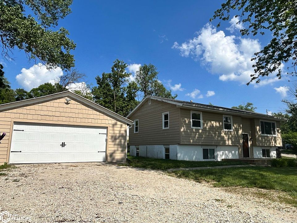Opportunity to own an investment or your next residence. This home is in the final stages of finish. It has a new roof, HVAC, water heater, washer, dryer, fridge, stove, kitchen sink and siding. It needs the cosmetic finishing touch! It has a large yard, 2 plus car garage with an extra workshop area, black powder coat fencing. Newer front deck and back deck has patios doors to it. Home also has had new replacement windows, and new fiber board siding that is primed but not yet painted! You have the opportunity to paint and finish to your preferences! Once completed this could be a 5 bedroom 2 bath home with a family room in the basement! Plenty of daylight windows in the lower level.