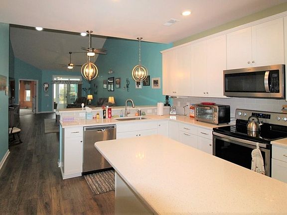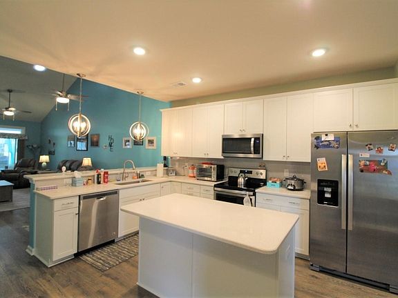 - Features: Breakfast Bar, Kitchen Exhaust Fan, Kitchen Island, Pantry, Stainless Steel Appliances, Solid Surface Counters