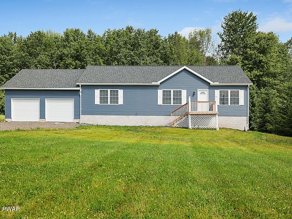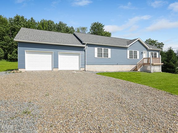 County Road Take Me Home! Newly Built home on 2 1/2 acres! You can put your own creative finishing touches on it! NO Community or Home Owners Rules or Dues! Clean ranch, with 3 bedrooms, 2 full baths, luxurious master bedroom with spa tub on suite. Tasteful eat in cherry kitchen with stainless steel appliances. You'll love having both a two car garage and full unfinished basement. French drain around perimeter of the house... lots of windows bring in tons of natural light and glorious country views! Healthy mature pines line the sides of the property! Enjoy crisp, clean, delicious well water right from the tap! Easy access for shopping and highway. 2-1/2 hours to NJ or NY. New gravel walkway just added!!, Beds Description: Primary1st, Baths: 2 Bath Lev 1, Eating Area: Dining Area, Eating Area: Modern KT, Beds Description: 2+Bed1st