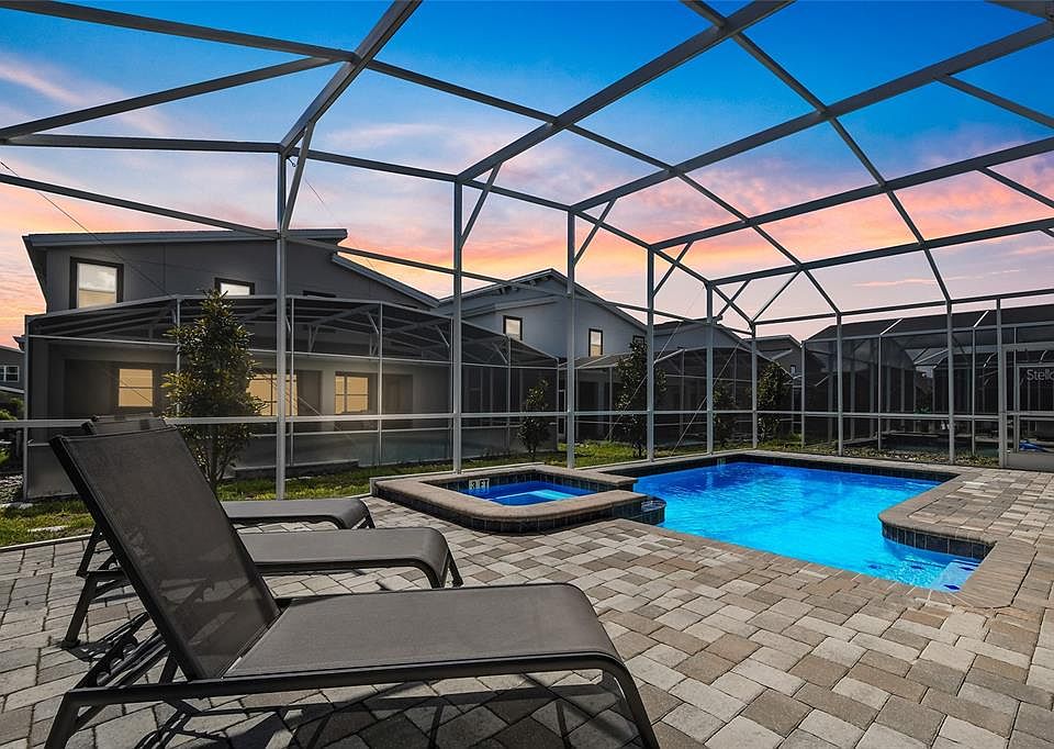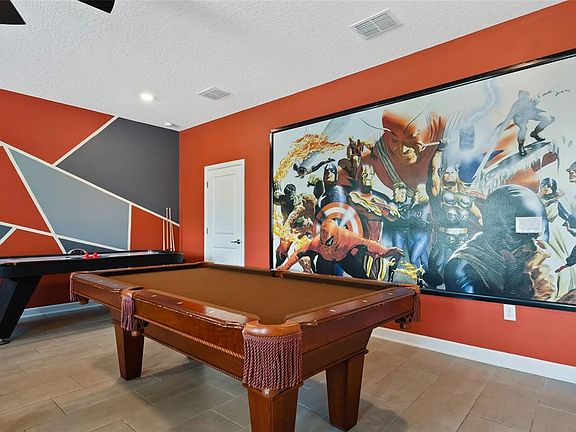 Major price improvement! This beautifully decorated 8 Bedroom Vacation Home comes fully furnished with desirable themed bedrooms (Harry Potter & Disney Princess), a decked out Movie Theater Room and a 20x20 Marvel themed Game Room! This Santiago model boasts 5 parking spaces out front for all of your guests! There is a fully equipped kitchen with quartz counter tops and dark stainless steel appliances which won't show fingerprints. There are 2 bedrooms with ensuite bathrooms on the first floor and 6 more bedrooms plus a cozy family room and movie theater upstairs! Step through the large sliding glass doors of the dining room into your fully screened-in patio complete outdoor dining furniture and loungers around the glistening Pool and Spa! Lawn maintenance is taken care of by the HOA. This income producing property is enrolled in a short term rental management program in the highly sought after and gated resort of Champions Gate. This home is already almost fully booked through the end of 2022! This home is located in a gated section of Champions Gate just off of Western Way so you can get to Disney World without having to drive on I-4. Feel free to use this property as your second home or vacation home and then rent it out when you are not using it. Not only does Champions Gate Resort have fabulous pools including a lazy river, a bar & restaurant, an outdoor Tiki bar, poolside cabanas, tennis and volleyball courts, a fitness center and a movie theater, it is also conveniently located close to I-4, restaurants, Theme Parks and other major attractions! Check out the virtual tours and make an offer today!