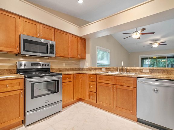 Breakfast barBeautiful maple color cabinetsSpacious kitchenStainless steel appliances