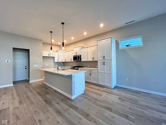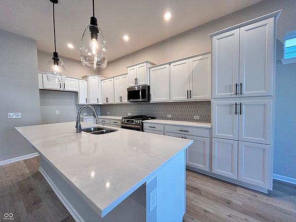 Beautiful new home in the heart of Carmel! This home will delight with 3 bedrooms, 2 and a half baths and a two-car 10' ceiling finished garage. The spacious main level features 10' ceilings and comes with an abundance of quartz counterspace throughout and a large quartz kitchen island to gather around with friends and family. This home features trendy kitchen cabinets, luxury laminate wood flooring in main areas, stainless steel appliances with gas range, refreshing super-shower, water softener rough-in and much more! Our homes feature 9' and 10' ceilings throughout the entire home! Community pool and a pool house are our top amenities, and you will be within walking distance to the Palladium, Monon Trail, gourmet restaurants, Arts and Design District and all that downtown Carmel has to offer!