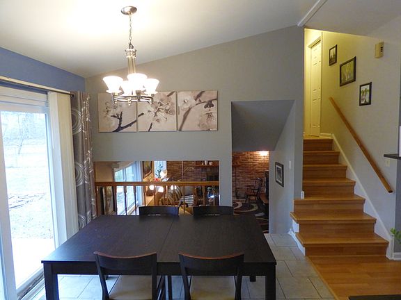 Charming home with many upgrades!!! Vaulted ceilings w/ newer Upgraded kitchen. Many new-newer SS appliances, Ceramic tile floor, backsplash, rehabbed cabs w/ nickel hardware, and New lighting. Lower lvl FR has wall-to-wall brick FP that is tremendous as well as a den/4th BR possibility. New AC in 2016 along w/Nest thermostat. All new Windows and patio door 2015 as well as new siding and gutters. Large lot for the this home with nice patio. Owner has maintained this home very well year-to year and made it especially beautiful for sale. Fresh paint. Will not disappoint.