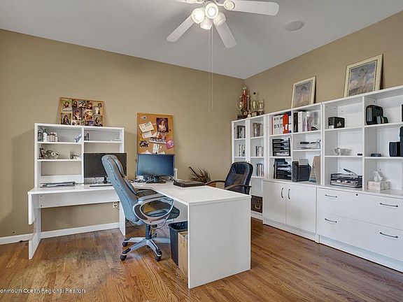 Cornerstone lot location in a private cul-de-sac tucked into the heart of Brick Township. This grand Colonial offers full Smart Home Technology throughout it's 2,795 sqft of living area and additional living area in the Basement. It will satisfy the largest household from multi-generational to work at home professionals, with 4 bedrooms upstairs, a 5th bedroom and a 6th bed/office on the main level. The coveted modern open floorplan on the main level and an expansive back deck will be perfect for entertaining family and friends. Also boasting a central vac system, heavy duty lift in the garage with a bump out area for a workbench, and fully wired speaker system throughout with a central control by the kitchen or smartphone. Location close to shore beaches and to the Parkway