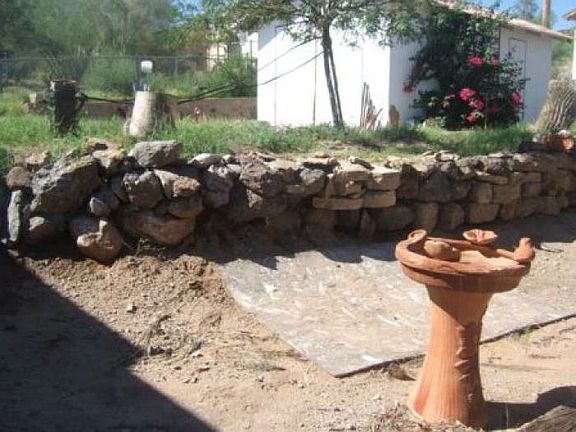 2 bd/1 ba home has new exterior paint, Saltillo tile throughout, eat in kitchen with lg. pantry, inside laundry hook ups, covered back patio, terraced back yard and detached PD garage.