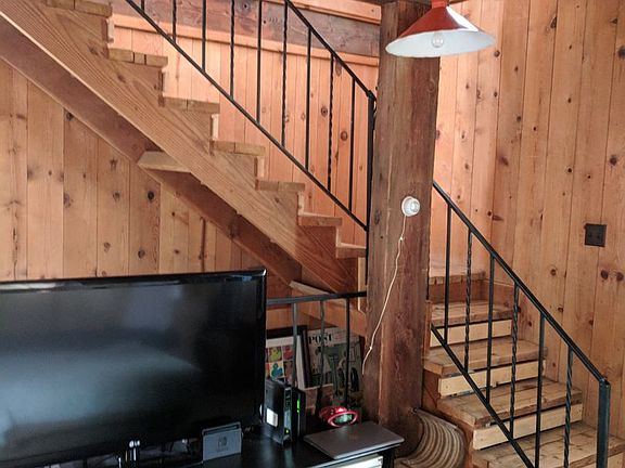 TOTALLY UNIQUE HOME FOR THE TOTALLY UNIQUE TENANTS! You'll not see another home like this one! This rustic home is three stories tall -- kitchen on lower level features all kitchen appliances including refrigerator, gas range, dishwasher, and even a newer washer & dryer! Main level living room features woodburning stove that can keep the whole house warm and toasty during those frosty winter months (of course there is a furnace too), and the top level features an open bedroom with skylights and bathroom with walk-in shower. Wood walls inside and out with open ceilings and large beams. Nice outdoor deck and lower level patio for relaxing and entertaining! Large lot in quiet neighborhood on a "dead end" street is so quiet with lots of trees! Fenced backyard includes storage shed! This is a rustic home -- like a mountain cabin in town! **Pets are allowed with refundable $300.00 pet deposit plus $30.00/month pet rent.
