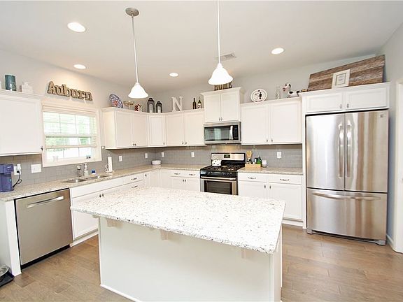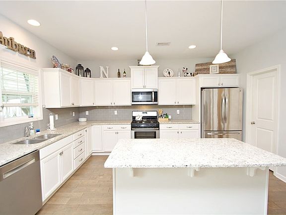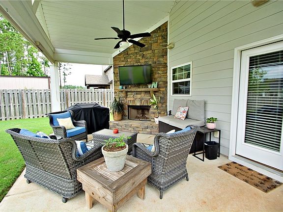 Spacious and functional with a flat backyard made for entertaining! Dining room boasts coffered ceilings and plenty of natural light. Flex space connecting dining room and kitchen could be butlers pantry, bar, or desk area. In the kitchen you'll find granite countertops, a plethora of cabinet space, custom pantry with wood shelving, and a breakfast area for extra seating. Great room showcases a fireplace with ample room for furniture. Upstairs, the large master bedroom has a seating area plus a thoughtfully designed en suite with a roomy closet, double vanities, and separate tiled shower + garden tub. 3 other sizable bedrooms are upstairs and share another full bath. Don't miss the flat backyard with a signature Game Day covered porch with fireplace and HDMI wiring built in for Saturday football and time with family!