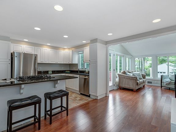 Ranch living with a modern flair! Deceptively large, move-in ready, home with open, updated, eat in kitchen, granite counters and stainless appliances. Spacious rooms include formal dining room w/ bay window, living room w/wood burning fire place and stunning mantle, master bedroom w/walk in closet and full bath and a recently rebuilt family room with floor to ceiling windows bringing the outside in. 2 additional bedrooms flank the main hall bathroom creating additional private spaces. The finished basement has ample rec room and additional storage. Back deck, paver patio, deep property, outdoor gas line, huge 2 car detached garage with more storage. external generator hook up. The flow, out door space and amenities make this a perfect home for entertaining.