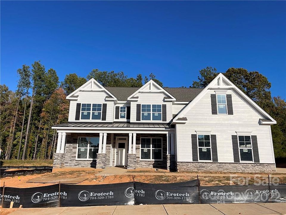 NEW luxury home in Waxhaw! This Charleston plan features five bedrooms, four full baths, a screened porch, and more than 3,700 square feet. The main floor features a guest suite with a shower, a formal dining room with tray ceiling, butler's pantry, and a study with French doors and a faux coffered ceiling. The beautiful kitchen has a farmhouse sink, white cabinets with a contrasting gray island, quartz counters, a tile backsplash, and stainless appliances including a wall oven and gas cooktop. Bathrooms have been upgraded to include quartz counters, a luxury primary shower, a Jack-n-Jill bath, and an additional bath on the upper floor. Other extras include a full-wall stone fireplace with cedar mantle, tray ceilings in the foyer & primary bedroom, a large drop zone, and an outdoor area with a paver patio, fire pit and seating wall. Onsite New Home Specialist can provide guidance regarding estimated completion dates - however any dates provided are subject to change.