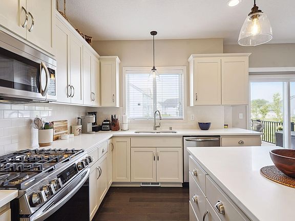 This stunning four bedroom, three bathroom home with a three car garage is a must-see! The living room, dining room, and kitchen are all beautifully finished with enameled trim, shiplap, subway tile and stainless steel appliances, creating a modern and stylish look. Multiple stairways lead to the four bedrooms upstairs, including a primary suite with private bath, a loft with built-in desk, as well as a convenient walk-through laundry room. The lower level is unfinished, offering endless possibilities for customization and expansion. Located in the highly sought-after Prior Lake-Savage Schools district, this home is within walking distance to the Hamilton Elementary School. The neighborhood is known for its peaceful atmosphere, and the beautiful backyard with maintenance free deck is perfect for outdoor entertaining and relaxation.