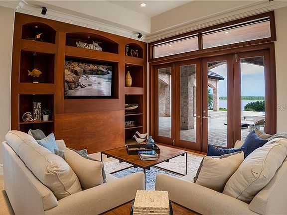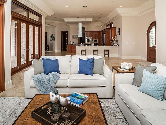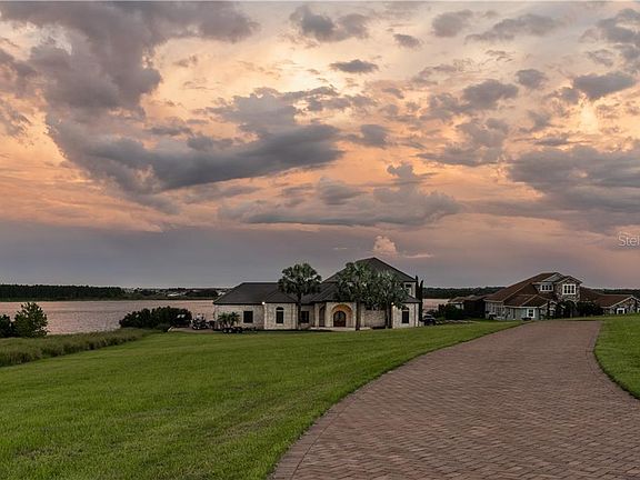 Exceeding the standard of luxurious living is this Chain of Lakes direct waterfront custom built estate that boasts elegant architecture and appreciates Florida's opulence with gorgeous lake views from every window. The moment you walk in the front door, you are greeted by the breath taking views of the infinity pool and lake. Phenomenal kitchen w/custom cabinetry including top of the line Liebherr Refrigerator, Wolf gas cooktop, double ovens, microwave, built in coffee station, huge center island and walk in pantry. Master suite downstairs w/dual walk in closets and a master bathroom that rivals a 5 star hotel spa. Form, function and flexibility are provided with 4 additional ensuite bedrooms 6 full baths, 2 half baths, theater room, game room w/bar and balcony access. Additional features include travertine flooring, mahogany wood flooring, 4 car garage, an additional storage garage, 4+ acres of land, and even 2,000+ sf of finished attic space with lighting and flooring. Every day is a vacation with the gorgeous infinity pool, outdoor kitchen, lake views, fire pit and covered dock. You could never, in a hundred summers, get tired of this view.