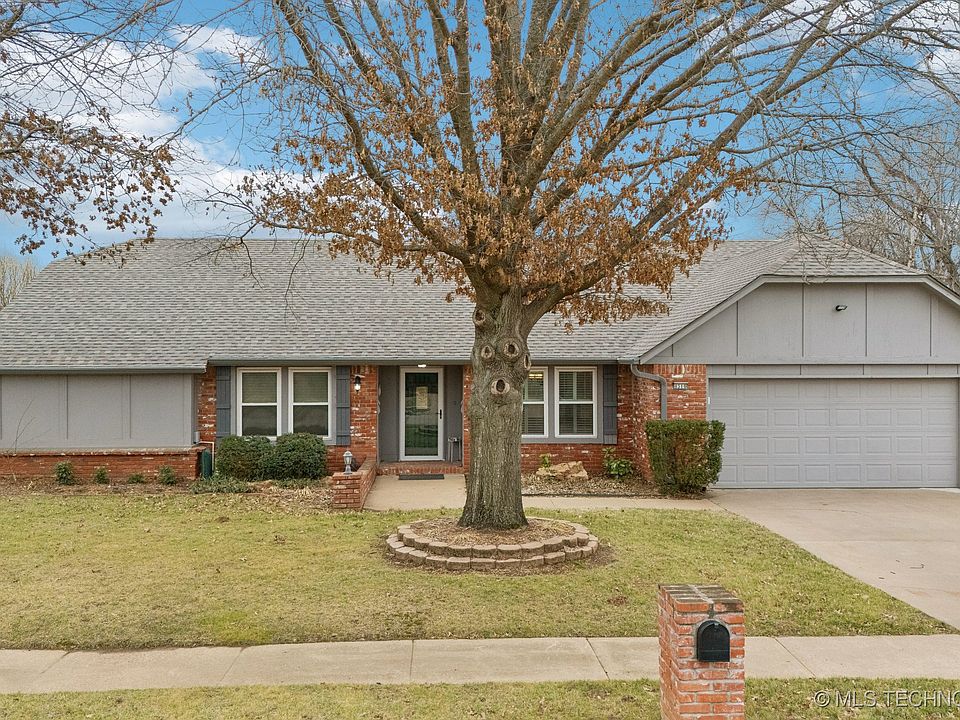This large vaulted ceiling living room has plenty of room for the whole family. Entertain family and friends in the formal dining room adjacent to the living room. Enjoy plenty of storage in the updated kitchen, complete with granite countertops and extra storage space in the laundry room. The breakfast nook is a great place to have your morning coffee or walk out on the patio. The 4th bedroom could be an office or study while separate from the other bedrooms. Conveniently located near shopping centers, restaurants, gyms, entertainment, and quick access to Highway 169 and the Creek Turnpike! Freshly cleaned carpets and meticulously cleaned bathrooms welcome your family to move in.