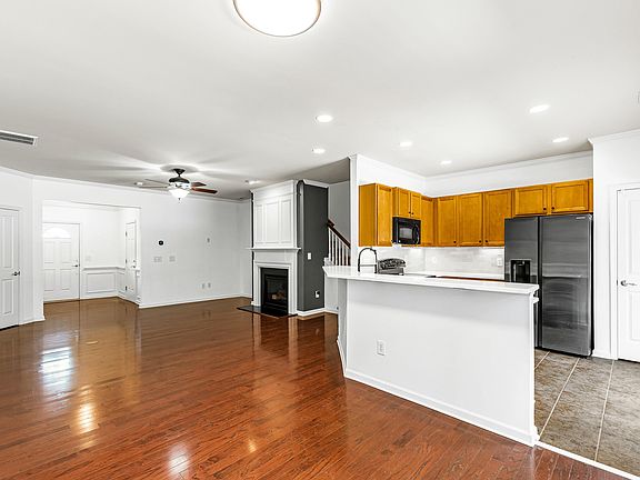 This two-story townhome combines comfort and convenience, with recent upgrades such as a new roof (2025), HVAC system (2024), backyard fence, and a water heater installed in 2021. The one-car garage offers built-in storage, enhancing functionality. A sunny entry foyer leads into the spacious family room, complete with a cozy fireplace, and seamlessly flows into the kitchen. The kitchen features quartz countertops, a stylish tile backsplash, a pantry, and a sliding glass door that opens to the landscaped fenced yard (maintenance free as well). The open layout allows the kitchen to overlook the eat-in breakfast area and family room, creating a perfect space for entertaining. Upstairs, you'll find a convenient hall laundry room and a primary suite that includes a walk-in closet and an updated bath with double vanities. Two additional guest bedrooms share a full bath. Here, you'll also have direct access to a community clubhouse with a swimming pool. With its proximity to Brier Creek shops, RDU, and RTP, this home offers the perfect combination of comfort, convenience, and location.