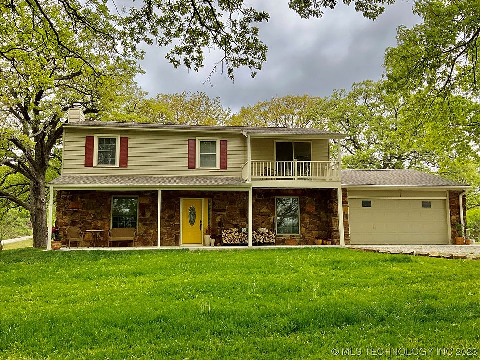 Aggressive Price Improvement! Bring your animals and gardening tools to this potential "urban farm space." Lovely home on 3.74 wooded acres. A gorgeous setting minutes away from highly desirable Tulsa Hills. New Roof, Driveway, Heater, Hot Water Tank, Gutters, Paint, and Updated Bathrooms. Beautiful living area with wood burning fireplace and powder bath. Flex room with wet bar/coffee station could be office, workout space, green room. Peaceful outdoor living area provides a huge back yard with covered patio, pergola, fire pit and separate concrete pad for grilling, perfect for entertaining a very large crowd. Come to the quiet...enjoy the beautiful sunrises from your balcony and sunsets from your backyard Oasis. Convenient to many restaurants, shops, and easy highway access.