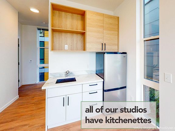 - Exterior features: Amazon Hub, Availability 24 Hours, Baldwin piano for shared enjoyment, Barbecue, Bicycle storage, Building-wide Wireless, Community kitchens stocked with Breville espresso maker, Instapot air fryer, cookware, Complimentary WiFi, Custom Cabinetry on each floors Custom Kitchen, Custom cabinetry, EACH COMMUNITY KITCHENS STOCKED WITH COMPLIMENTARY HIGH-END SUPPLIES LIKE AVOCADO OIL AND TAMARI., Electricity included in rent, Floor Covering: Stone, Flooring: Laminate, Flooring: Stone, Free Internet, Garbage included in rent, Giant Windows for incredible Natural Light, Heating: Electric, High-speed Internet Ready, Income Restricted, Internet included in rent, Kitchenette with marble countertops, Lofted, MFTE, Modern full bathroom, On-Site Management, One Year Lease, Online Maintenance Portal, Online Rent Payment, Party Room, Pet Friendly, Pet Washing Station, Sewage included in rent, Stainless appliances, Street Parking Only, Free Bike Storage!, TV Lounge, Top Floor, Utilities fee required, View Type: City, View Type: Mountain, Water included in rent
