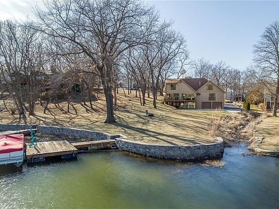 Delightful Lakefront property located on the Northwest side of Weatherby Lake with a vast .49 acre lakefront lot. This impeccable property has been updated in every room and includes the lake lifestyle, beautiful views, nature, swimming, fishing, & boating from your own private dock. Access to the many amenities of this private lake community come with: a sandy swim beach, community waterfront pavilion, pickleball & tennis courts, playgrounds, plenty of parks, clubs for all, & boating activities. Inside the home you will discover the sweetness of main level living with Owners Suite w/large walk in closet, Chef's Kitchen, Granite Countertops & Kitchen Island, Eat in area, Laundry/craft room, Great room, Dining room, Guest bedroom/Guest bathroom as well as an oversized gorgeous deck to enjoy your shady afternoon quiet time, Sunrise, or moonrises are also glorious. Upstairs you have 2 Jr. Suites each with full baths. On the lower level you enjoy the finished walk out basement with a granite wet bar, Lakeside Patio, custom built-in entertainment unit, multiple storage areas, Electric fireplace insert, floor to ceiling windows for great lake views & another full bath. Convenient access to the airport, Zona Rosa, Downtown Kansas City & more. Multiple upgrades have been completed on this property: new Anderson windows, 2 new HVAC'S in 2019, new carpet in Jan 2023, Hot water Heater in 2022, Radon mitigation unit, Garage doors & more. Move in ready and a must see. 2023-04-06