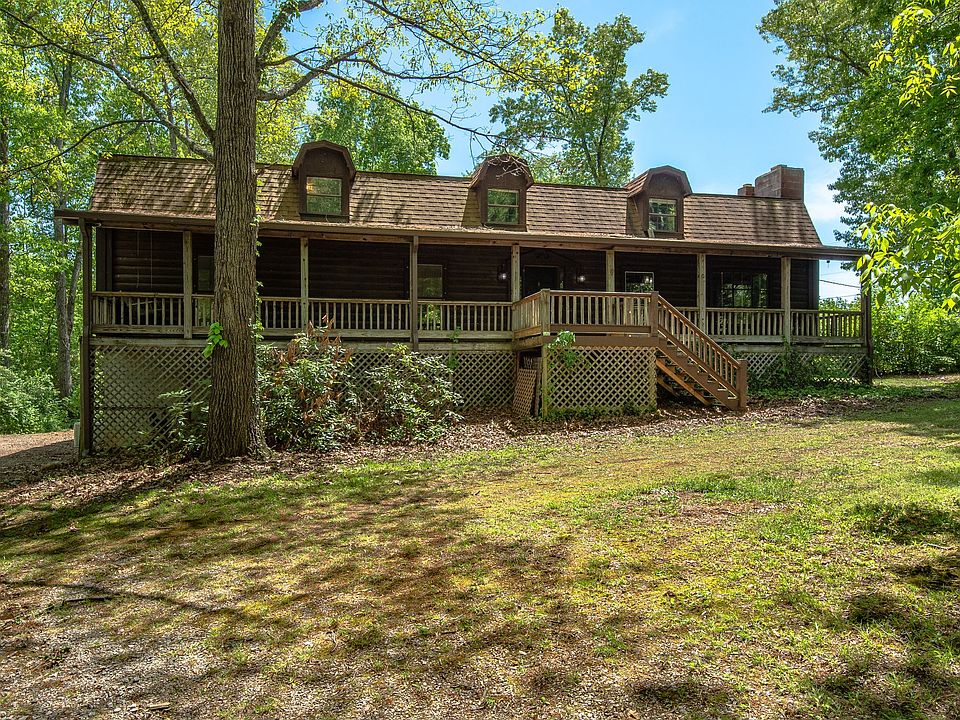 Beautifully Handcrafted Log Cabin tucked away in Pegram!! This rustic home offers an intimate, yet spacious way of living surrounded by 5 acres! Offering both a front and back porch that overlooks the privacy of the land, a two story stone fireplace, all bedrooms downstairs, Storage galore with an HUGE attic and unfinished basement, and ready for its next owner!! 1,000 Gallon Propane tank for heating and stove, Storage Shed, Covered Parking, and so much more!! Home is sold as-is!