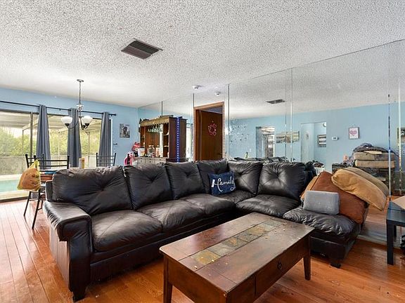 Prime Location! This 2/2/2 + den Pool Home on one story with 2052 sqft is centrally located to schools and shopping. Circular driveway leads to the charming exterior accented by shutters, siding and a red front door. The Front door leads to a spacious living room accented by wood floors. Adjacent is the dining room which can accommodate a round table seating 4 comfortably. Sliders provide lots of natural light. The kitchen offers plenty of cabinet space, tile backsplash, newer stainless-steel appliances and tile floors. Spacious master bedroom offers carpet, ceiling fan and sliders to enclosed lanai with privacy fence. The master ensuite is a work in progress for the new owners to finish to their liking. An additional bedroom with full bath tub/shower combo is on the opposite side of home. A large den which could be used as a playroom, office or converted into an additional bedroom is excellent additional space. A large backyard is fully fenced! AC newer in . Roof original. This home has a great deal of potential with a little TLC! Schedule your showing today!