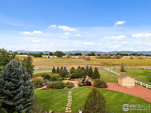 Amazing property for entertaining and multi-generational living; ranch style home with a finished walk-up/out basement and with over 6,000 sq ft (over 4,800 sq ft finished) and on a spacious 40,000 sq ft lot with panoramic Longs Peak and foothills views. This home has hosted weddings, fundraising events and live music parties so if you like to entertain, this home is ideal. Arrive at the home and you're greeted with the relaxing front courtyard and enter into the spacious main level with over 3,000 sq ft and be prepared to be wowed by the updated kitchen w/professional grade appliances; Viking 4 burner gas range w/convection oven, Bosch dishwasher, Chef Collection refrigerator w/ice maker & sparkling water tap, built-in GE Profile oven and microwave, granite counters w/breakfast bar seating. The spacious primary bedroom is amazing with an electric fireplace and access to the back deck. The primary bathroom will delight with it's oversized steam shower, sauna, heated towel rack, jetted tub and walk-in closet. The basement will impress with the curved wet bar and large, open entertaining area that could be transformed into a theater room. There is a sliding door access in the basement to walk up to the outdoor entertaining space that includes a fire pit area, 2 separate waterfall ponds, raised garden beds, a shed and a hot tub to enjoy with those mountain views. There is also an expansive, low maintenance deck with 2 doors for access into the living room and primary bedroom. This home is an absolute delight to show and will impress buyers looking for space inside and outside. Home has been fully pre-inspected, sewer line scoped, new 96% efficient furnace installed and radon tested low to provide open, honest, transparency to interested buyers.