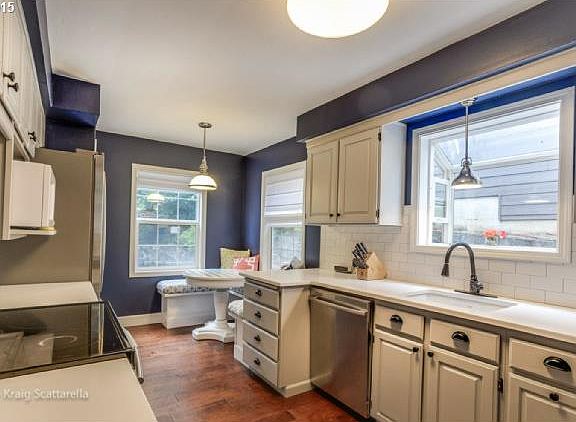 Move in Ready & Remarkably Updated Burlingame Home. Newly Remodeled Kitchen w/Quartz Counters, Subway Tile, SS Appliances & Built-in Nook. 3 Bedrooms Up & 1 on Main. Fam Room/Bonus on Lower Level w/Fireplace. Relax in the Backyard w/Spacious Stamped Concrete Patio & Fire Pit. Garden Beds & Fruit Trees on Upper Terrace. Convenient to Groceries, Coffee, Bus, Park, I-5, OHSU & Downtown. Ask for list of updates.