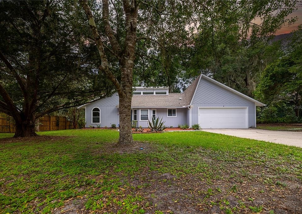 One or more photo(s) has been virtually staged. Tastefully updated 3 bed 2 bath home with a 2 car garage that sits on a spacious .30 acre lot located on a quiet Cul de sac street. Step into this home with tons of natural light provided by the unique clerestory windows and cathedral ceilings with a timeless Brick wood burning fire place completing the cozy essence of a desirable living space. Featuring a split design with a true master suite with walk in closet and a master bathroom with soaking tub. Both bathrooms have been updated with granite wood shaker vanities, modern fixtures and tiled tub/shower combos. This home features more plentiful updates starting with a new open concept granite kitchen including wood shaker cabinets, modern hardware, new samsung stainless steel applainces with warranty included! Addtionally, the flooring has been udpated with high traffic vinly flooring, new base boards, fresh interior paint and new celing fans. New Garage motor, new 2023 HVAC system and a pristine roof with plenty of life expectancy. Added living space with an enclosed back porch overlooking the wooded oversized backyard. Located just 9 mins from I-75 main highway, minutes from shopping, restaurants, University of Florida, Shands, Celebration Point, Botancial gardens and so much more! Home is being offered turnkey, No HOA fees, easy to show so book your showing today before it flys off the shelf!!