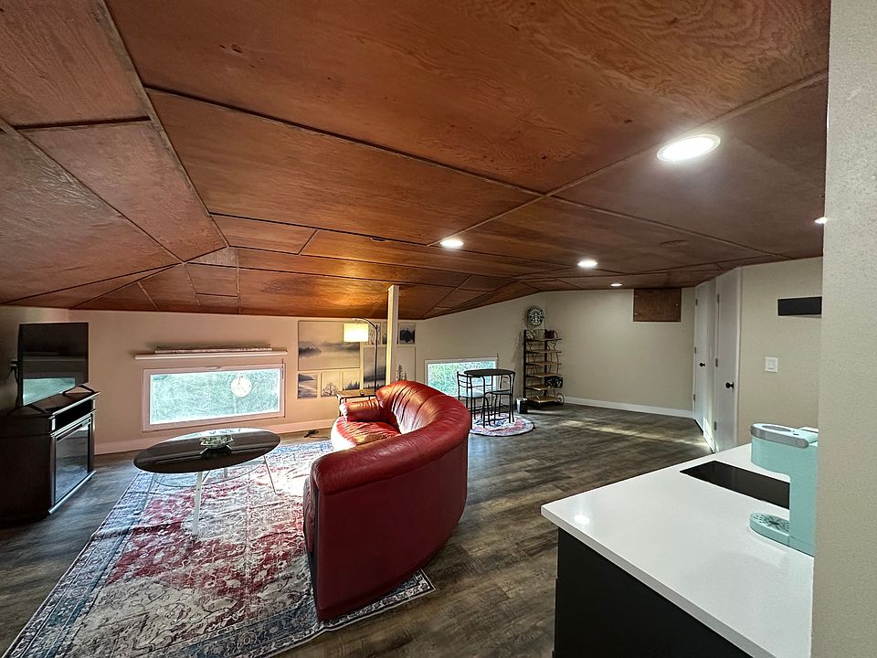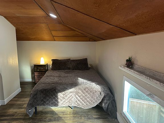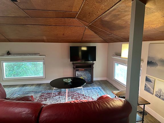 Charming Loft-Style Retreat Welcome to a unique and inviting space perfect for those seeking comfort, privacy, and convenience. This property features: Open-Concept Design: A spacious living area with a warm, sloped wooden ceiling that adds character and charm. Comfortable Furnishings: A striking red leather sectional sofa, modern decor, and a cozy fireplace create a relaxing atmosphere. Natural Light: Large windows allow for plenty of daylight and offer tranquil views of the surrounding greenery. Functional Amenities: A sleek kitchenette with a coffee station, a small dining/workspace nook, and ample room to unwind. Quiet Environment: Ideal for professionals or those with nontraditional schedules. The property is designed with privacy and relaxation in mind. Whether youre looking for a peaceful retreat after a long day or a welcoming place to work and live, this property offers the perfect blend of comfort and style. Incinolet is a cutting-edge, water-free toilet that uses electric heat to incinerate. This innovative solution eliminates the need for water, plumbing, and drainage while ensuring zero polluting emissions. Fully furnished, landlord pays all utilities including WiFi. This unit comes with Kitchen essentials Microwave, refrigerator, TV, Starter kitchen essentials, Stovetop. 1 dedicated parking spot. Shared EV charging.