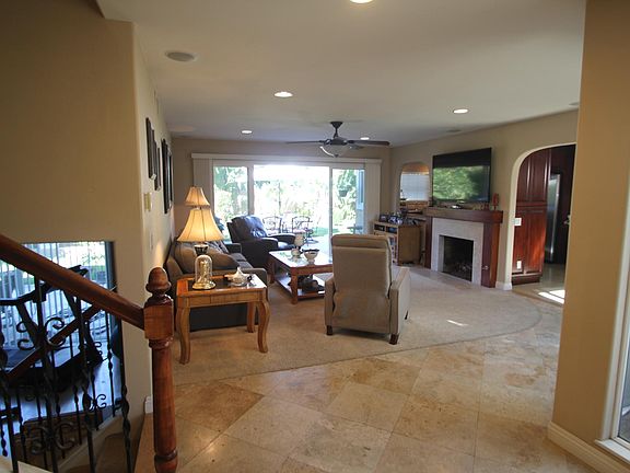 Beautifully upgraded with new led lighting inside and out. Granite counters, tumbled marble showers and floors, cherry cabinets, all dual glazed windows and doors plus a gorgeous kitchen! Fireplace with a gas log in the living room. Downstairs there is a family room, an office/den (could be 4th bedroom) and a 3/4 bathroom (with a shower), direct access from the 2 car garage which has extra storage and a work area. 4 steps up is the main living area. The entry opens to a view of the living room and backyard. The open kitchen faces the backyard, adjacent dining room and is open to the living room, too. The master bedroom has a balcony that overlooks the backyard. There are two additional bedrooms upstairs, both open onto a sundeck, plus a full bath. This house is fully landscaped with a huge patio area and mature citrus trees (lemons, oranges and grapefruit). The yard has an automatic irrigation system plus a weekly garden service. Close to the beach, downtown HB, shopping and schools. You must see this one! Gardener included. Additional security deposit if pets are approved (subject to owner approval of breed and size). Please note these are older photos and furniture is different.