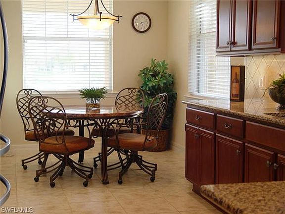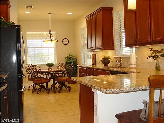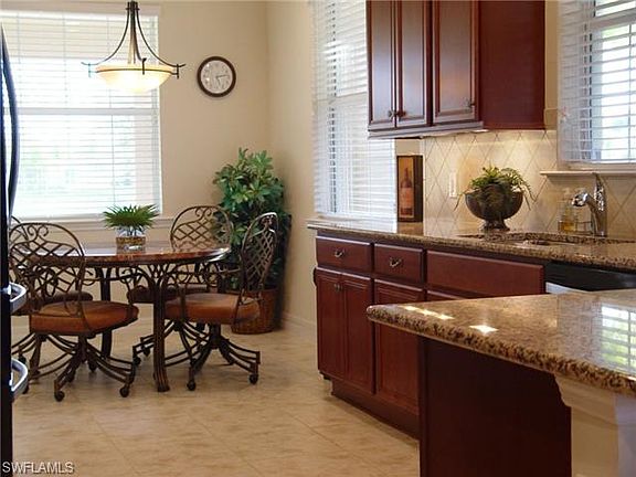 Beautiful, fully furnished Kendal II home is loaded with upgrades and located on a premium lake view lot. Built in 2014 this home has barely been lived in. Features include an extended brick paver lanai with an outdoor kitchen and sliding glass doors to both the master bedroom and living room. The garage was also extended an additional 4' to accommodate two cars and plenty of storage. The kitchen has been upgraded 42' maple cabinets with under cabinet lighting and custom backsplash. The master bath has also been upgraded to include granite counters, dual sinks, maple cabinets and the walk-in shower has been enlarged. All this and walking distance to the Town Center. Verona Walk is conveniently located close to downtown Naples and minutes to Marco Island. The Verona Walk Town Center includes resort style pool, fitness center, tennis courts, restaurants, gas pumps, bank and post office.